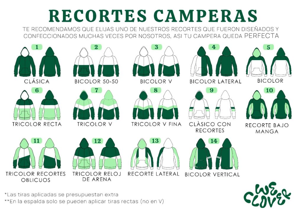 Una vez contratados, les pasamos nuestro sistema de talles. Solo tienen que medir un buzo que les quede bien (ancho y largo) y nos pasan esa info. Nosotros armamos los talles a medida para que a nadie le quede chico ni grande.